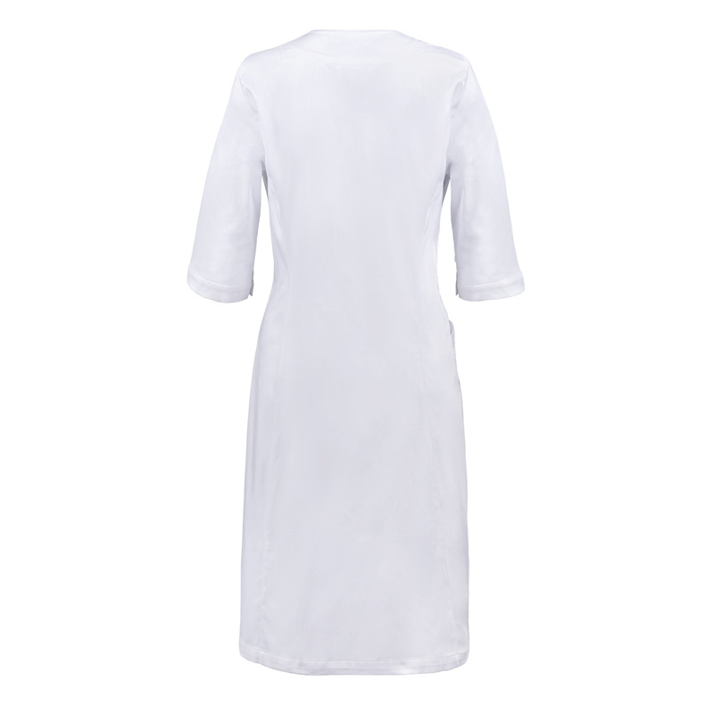 OverzichtElegante damesjas met asymmetrisch gewelfde sluitkant met designknopen en een ruglengte van 98 cm. De afgeronde V-hals, 3/4-mouwen met split en het huidvriendelijke materiaal bieden uitstekend draagcomfort.