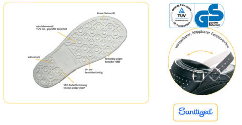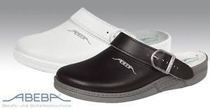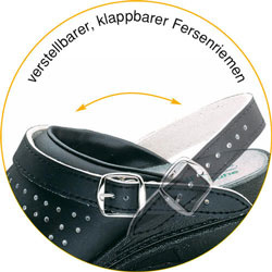 OverzichtOrthopedische klomp (unisex) met hielriem in volleder in zwart of wit.