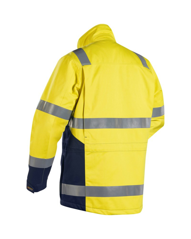 Multinorm winterparka ontworpen voor optimale signalisatie. Afneembare capuchon welke apart te bestellen is. Borstzak. Houder voor identiteitskaart. Binnenzak met telefoonzakje. Verborgen ritssluiting. Donkere stof op plaatsen die extra vuil kunnen worden. 50 mm reflecterende banden. Gecertificeerd volgens EN 471, klasse 3, EN 1149-5, EN 61482-1-2 Klasse1), ISO 11611 Klasse 1, A1), ISO 11612 (A1, B1, C1), EN13034 type 6, EN 342, EN 343:3,1