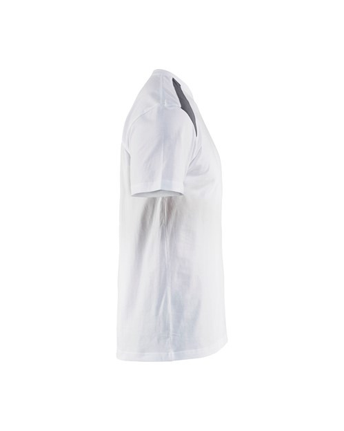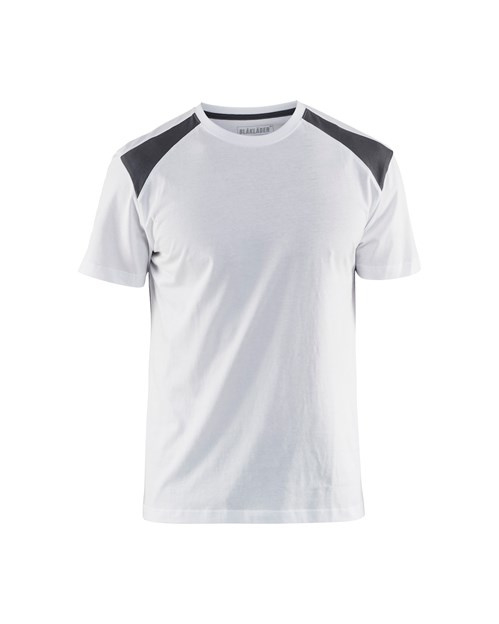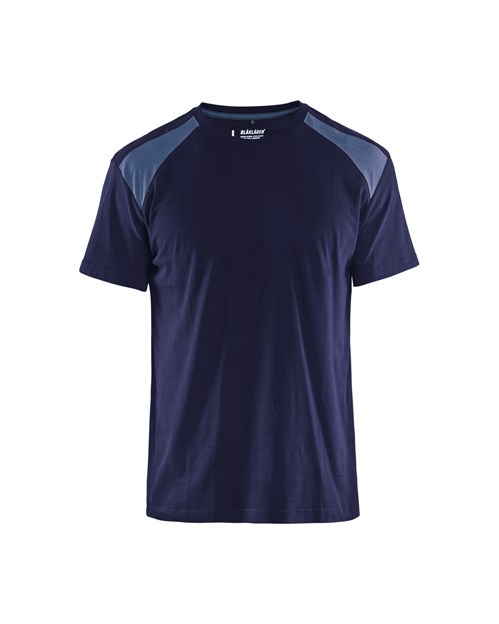 OverzichtMaak je outfit compleet met dit tweekleurige T-shirt. Goede kwaliteit door o.a. versterkte nek- en schoudernaden, en juk in contrastkleur over de schouders. Perfecte match met onze Industrie-collectie.