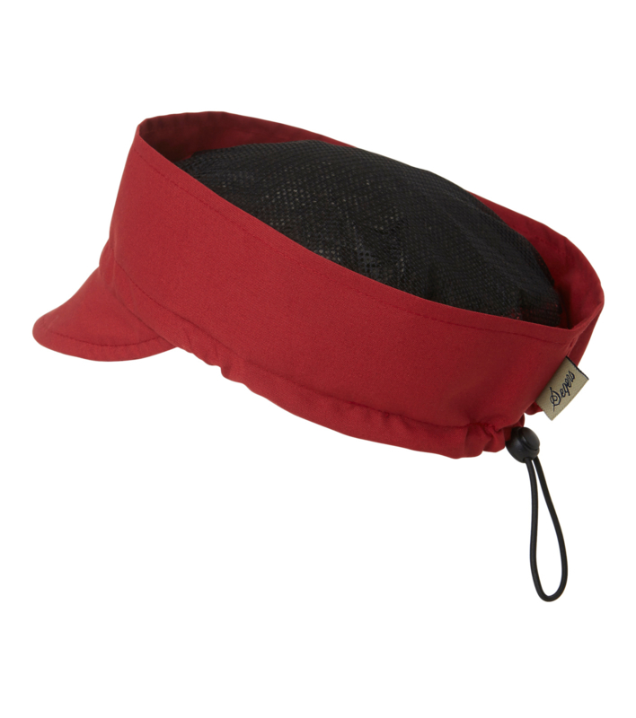 Verstelbaar met snoer en dop. Haarnet bovenop.