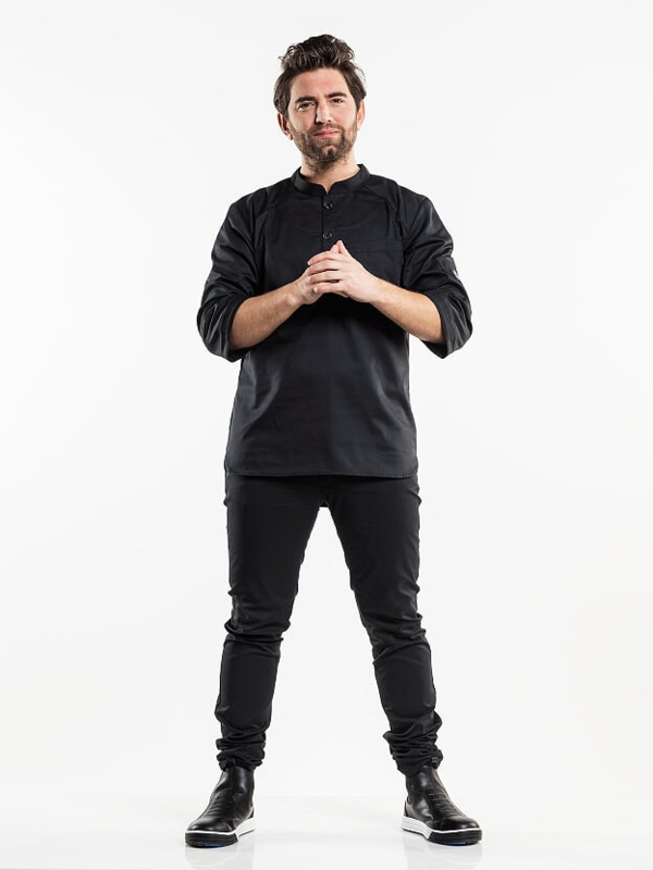 De Bujutsu koksbuis is ontworpen voor chef-kok Nick Bril van The Jane** in Antwerpen en is geïnspireerd op Japanse stijlen. De collectie is modern, strak en karakteristiek. De schuine, asymmetrische zakken brengen de artikelen tot leven. Opvallend aan deze collectie zijn de kleuren: de koksbuizen zijn bijvoorbeeld niet alleen in wit en zwart verkrijgbaar, maar ook in het groen. De aardse tinten van de schorten en sloven sluiten hier mooi bij aan. Deze kleurrijke outfits trekken de aandacht naar de keuken!