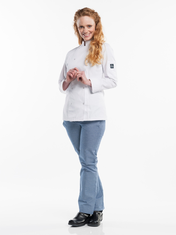The Lady Poco is part of our BSX collection and is also a genuine 'basic' chef jacket. The model is traditional and recognisable but naturally trendy and tailored. The fabric is practical, feels great and the jacket is finished with visible metal stainless steel snap fasteners. The Lady Poco is an excellent all-rounder.